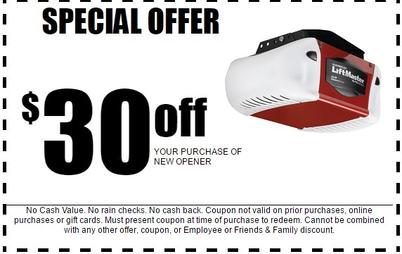 If you are looking for garage door opener repair, choose the $30 off coupon.